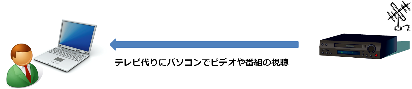 デジ造を使うことで、パソコン画面をテレビ代りに利用することができます。DVDやHDDの再生はもちろん、デッキにチューナーがあればアンテナをつないでテレビ番組を見ることも可能です。