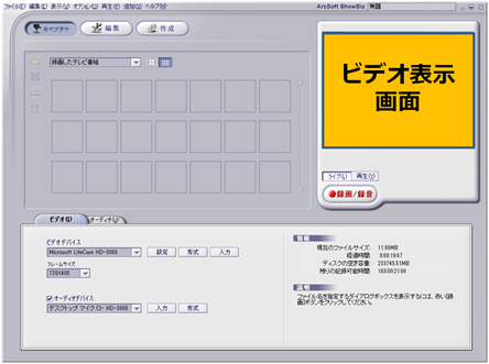 製品を接続後、付属の専用ソフト「ArcSoft ShowBiz DVD2」をインストールすれば、ビデオデッキで再生したものを、パソコンのファイル(mpeg1, mpeg2)として取り込めます。