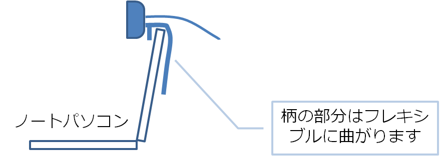 マイク内蔵なので、Skype用のウェブカメラ&マイクとして利用することも可能です。フレキシブルに曲がる柄の部分を変形させて、ノートPCの画面の上に乗せることも可能です。